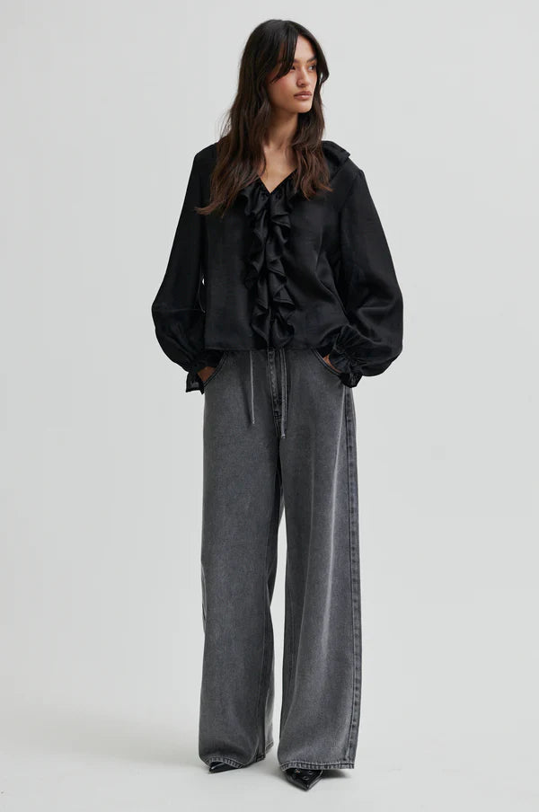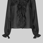 Second Femalen naisellinen frillapaita laskeutuvaa lyocell-sekoitetta. Kivat pussimaiset hihat, joissa kuminauha hihansuissa. Rento malli.