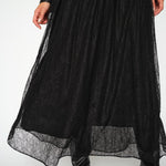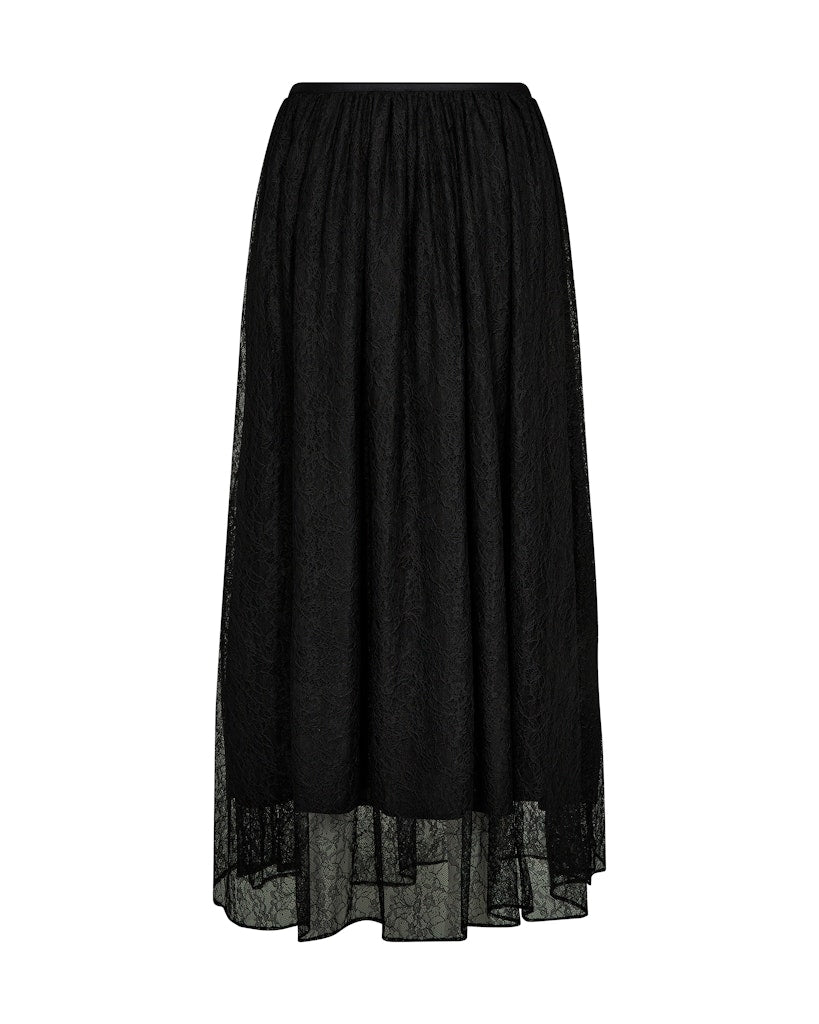 Ihastuttava pitsihame, jossa mukana hieman pitsiosaa lyhyempi alushame. Tyyliä nahkatakin tai neuleen kanssa. Täydellinen myös loppuvuoden juhliin! Tämä A-linjainen maxihame tuo taatusti asennetta asuusi!