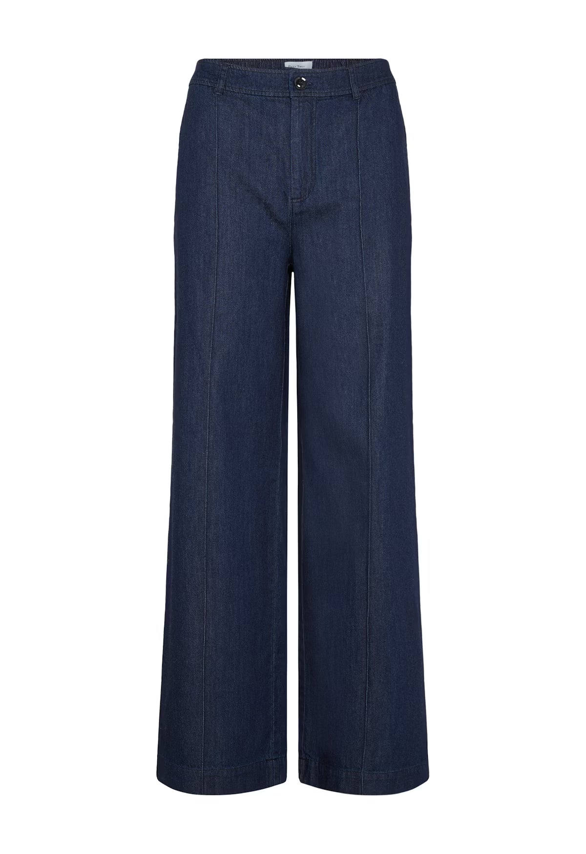 Part Twon tummansiniset farkut suorilla lahkeilla. Edessä vekit. Takana piilotaskut napilla ja kuminauhavyötärö. Kivat farkut siistimpään ja rennompaan menoon. Kaunis sinisen sävy syksyyn!