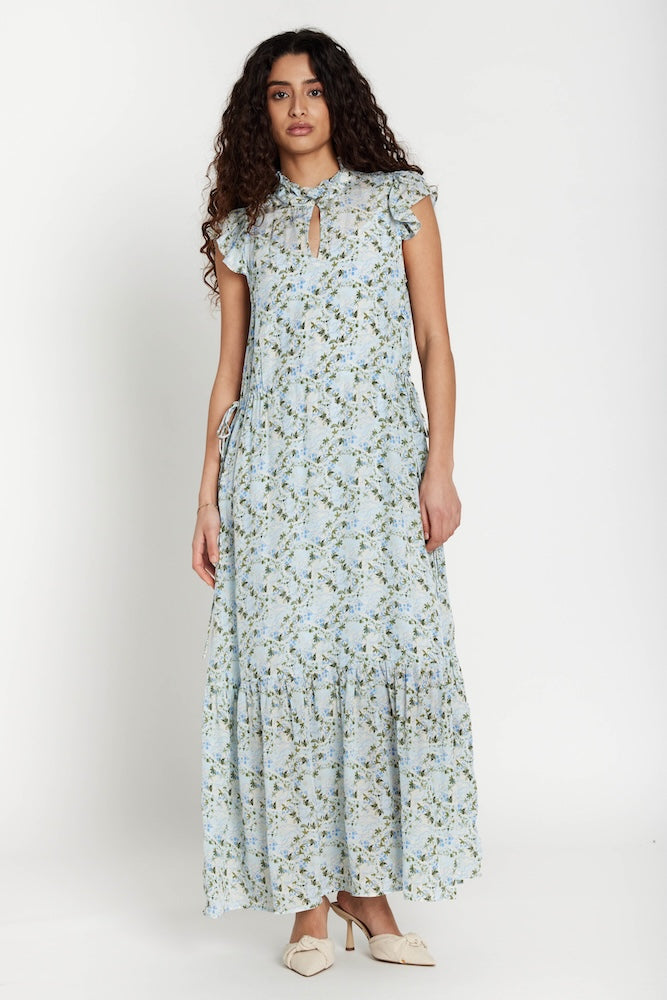 Ihastuttava Solfia Ofiata mekko pienillä frillahihoilla on täydellinen kevään ja kesän juhliin. Sopii toki myös arjen kesäisiin menoihin. Säädettävä vyötärö ja ihana pitkä malli tekevät tästä linjakkaan kauniin mekon monelle vartalolle. Materiaalina kauniisti laskeutuva viskoosi.