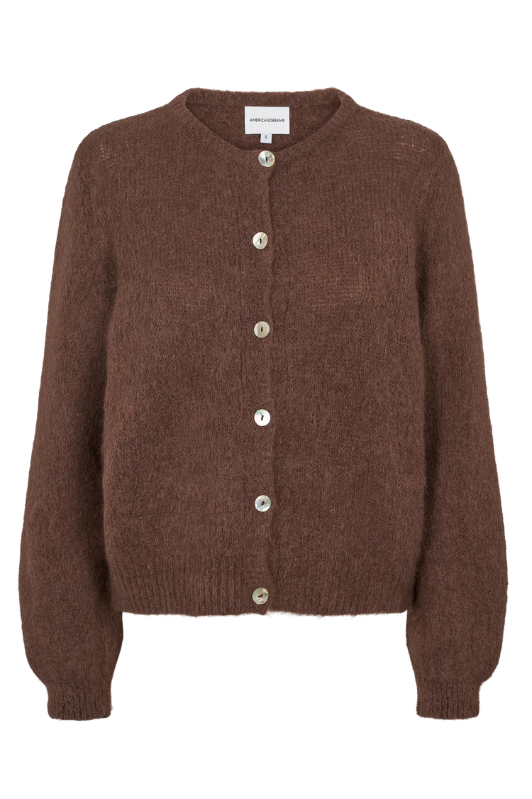 Americandreamsin suoralinjainen alpakkaneuletakki. Tämä klassinen neuletakki pyöreällä kaula-aukolla ja napeilla on kapselivaatekaapin perusvaate. Ihanan pehmeä materiaali, joka lämmittää talvella ja viileinä kesäiltoina!