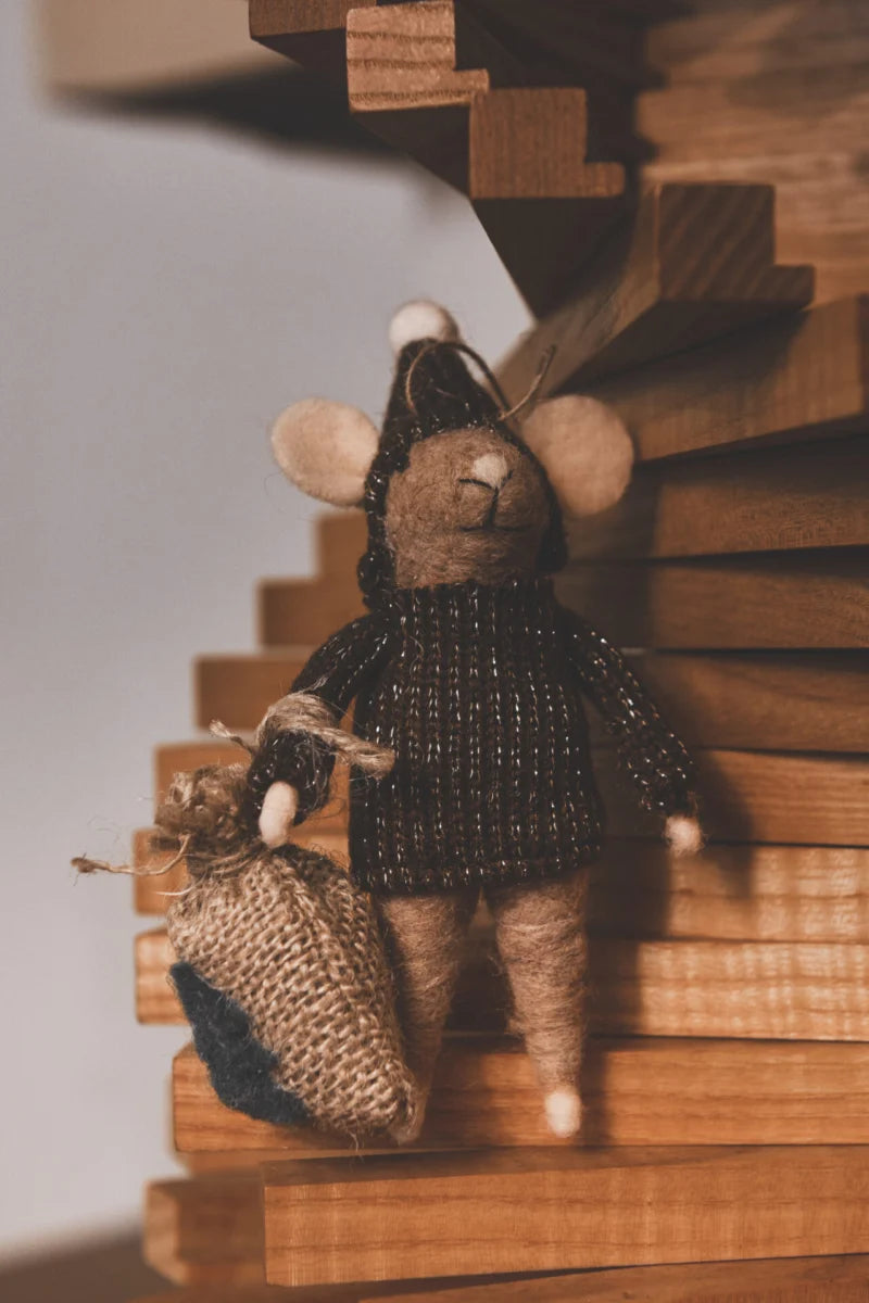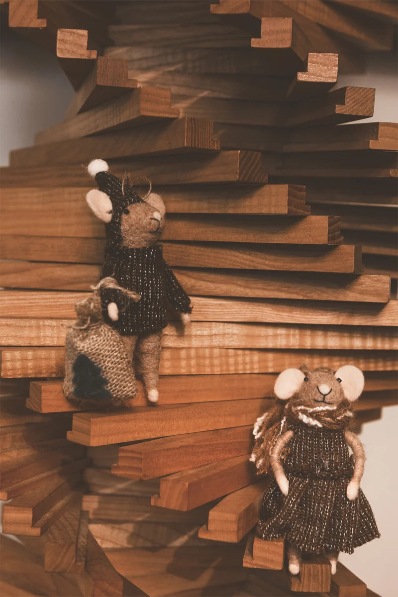 Ruotsalaisen Olsson&Jensenin kivat jouluhiiret sopivat koristeeksi luonnolliseen joulukotiin. Pakkauksessa kaksi hiirtä joulusäkin kanssa!