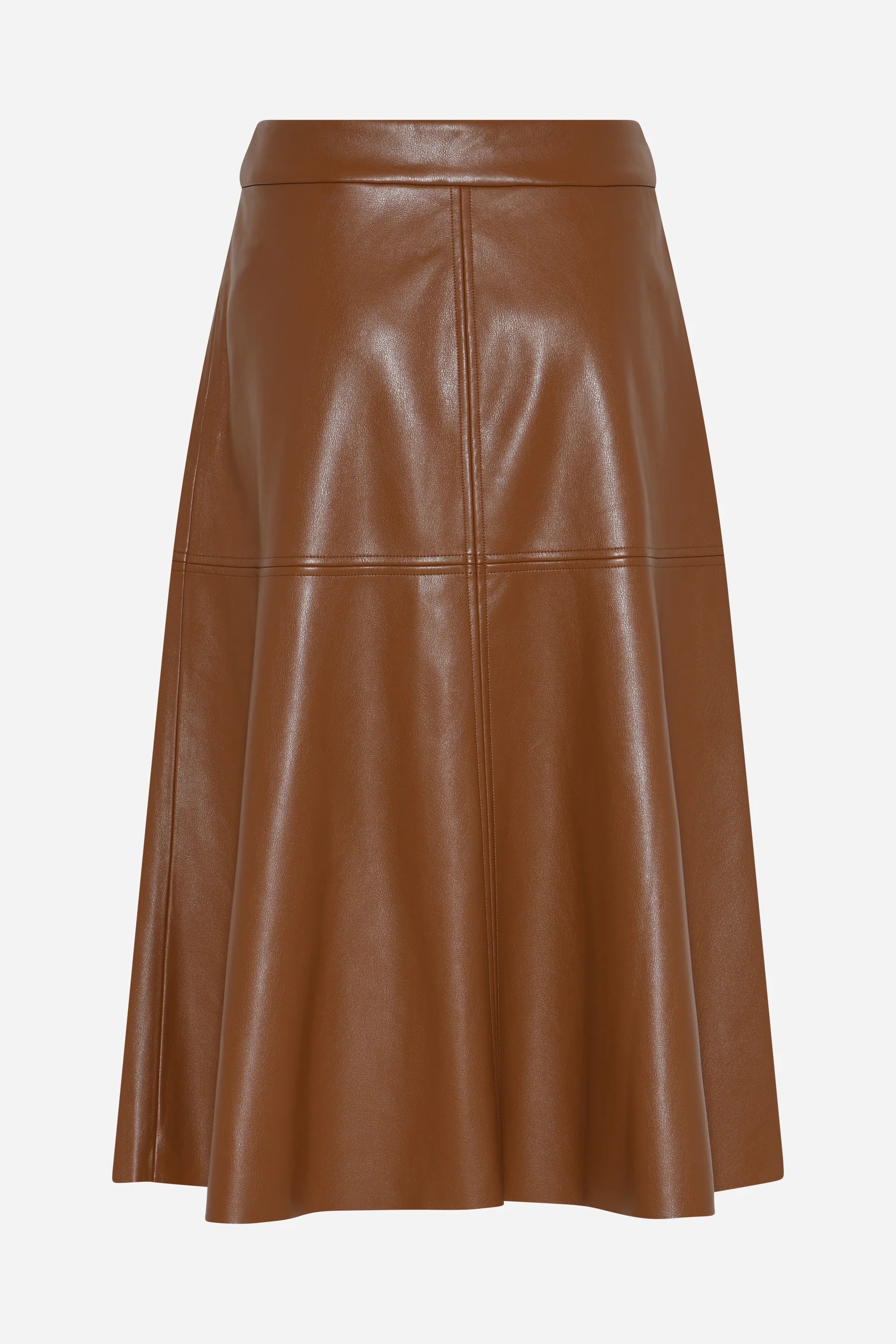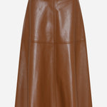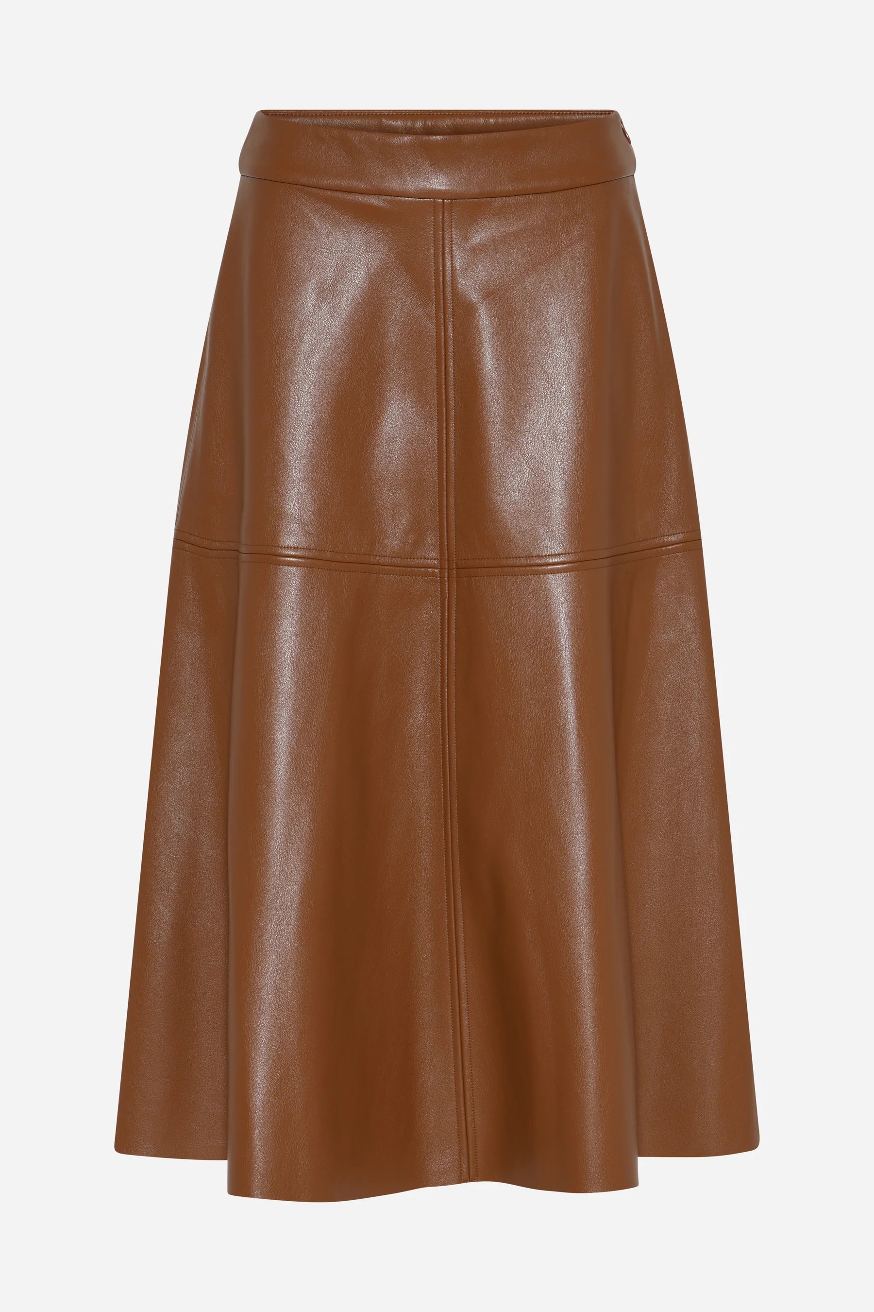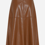 Bruuns Bazaarin upea A-linjainen tekonahkahame, jossa kivat saumayksityiskohdat. Yhdistä siistin puseron tai runsaan neuleen ja bootsien kanssa. Midipituus.