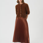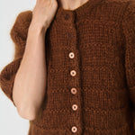 Vernona-neuletakissa on ihanan pehmoinen neulos ja vajaamittaiset hihat. Materiaalina mohair-villasekoite. Neuletakissa on O-kaulus ja keskellä napitukset. Neuloksessa kivat kohotetut yksityiskohdat. Täydellinen neule esimerkiksi hameen kanssa. Värinä kaunis punaruskea ruoste.