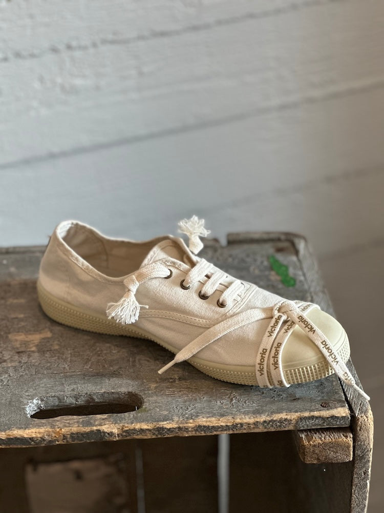 Espanjalaisen Victorian supermukavat kangastossut, jotka on valmistettu kierrätetystä ekopuuvillasta ja luomupuuvillasta. Näissä kanvaasitennareissa on pitävä kumipohja ja vahvistettu varvasosa. Kengissä on Victorian juhlavuoden kunniaksi ylimääräiset kengätnauhat mukana. Kengissä on Victorian tossuille ominainen kiva kesäinen tuoksu.