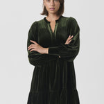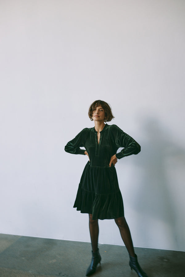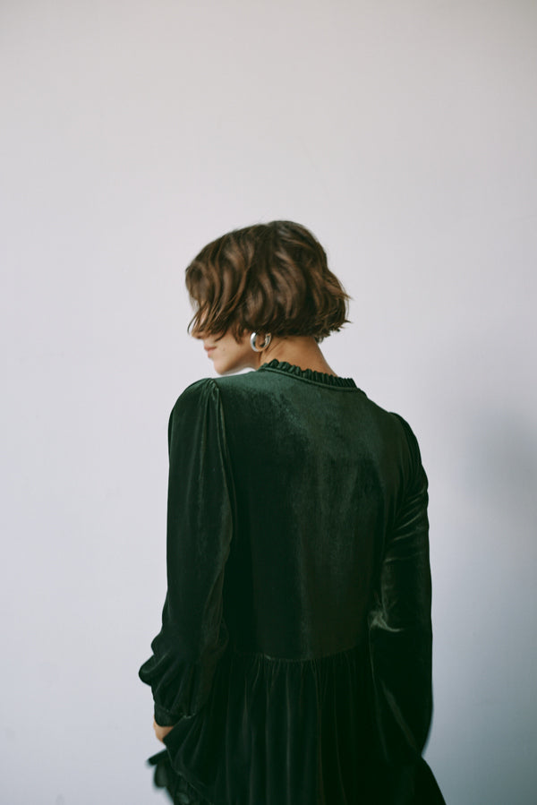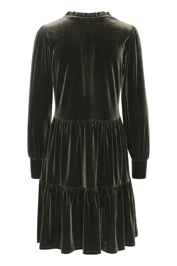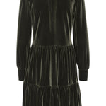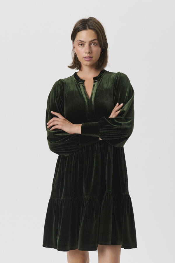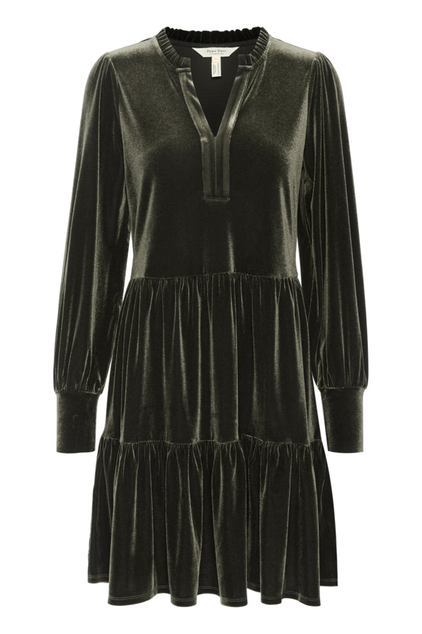 Part Twon kauniisti kiiltävä lyhyt samettimekko talven juhliin! Rento, mukava malli saappaiden tai korkkareiden kanssa. Pituus hieman polven yläpuolella. Kaunis kaula-aukko ja levenevä frillahelma tuovat ilmettä tälle mekolle. Our darling! <3